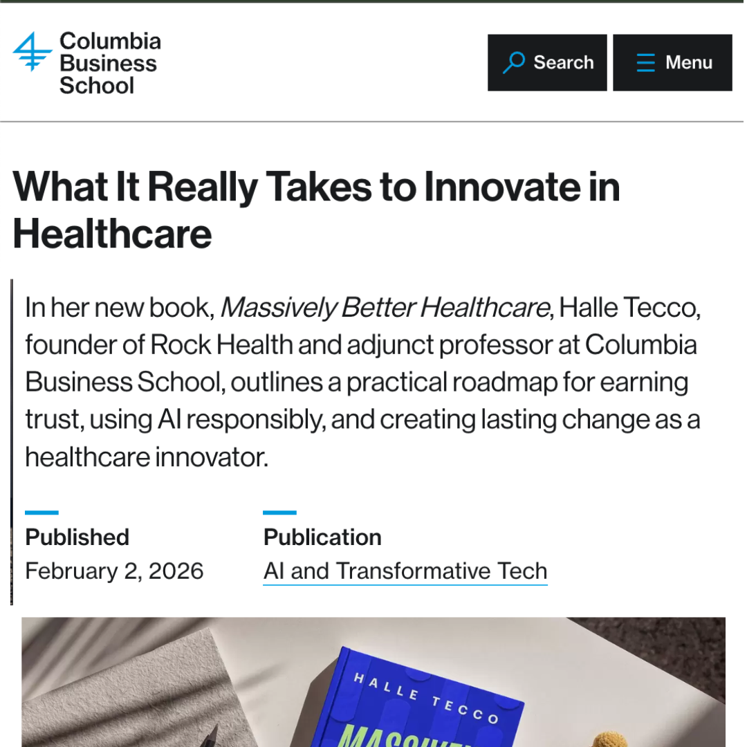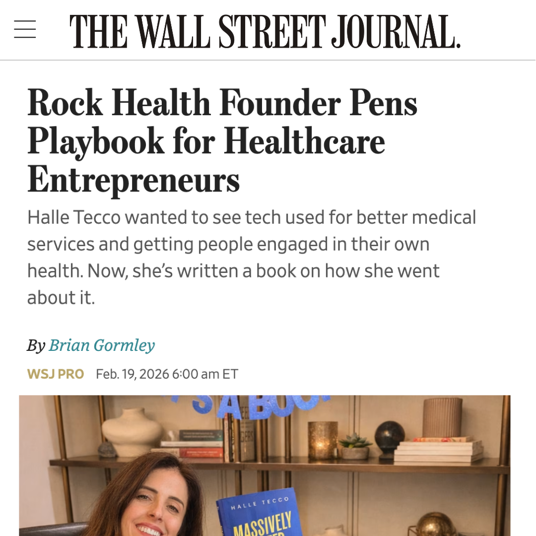 Halle Tecco has dedicated her career to making healthcare massively better. She is the founder of Rock Health and has backed and advised dozens of healthcare companies. She teaches future healthcare leaders at Columbia Business School and Harvard Medical School, and serves on the boards of Collective Health and Cofertility.